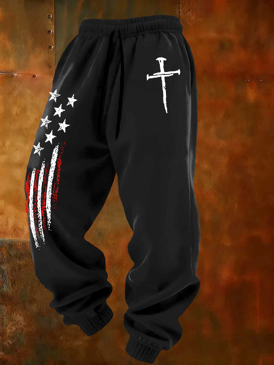 Faith Cross And US Flag Printed Casual Casual Sweatpants
