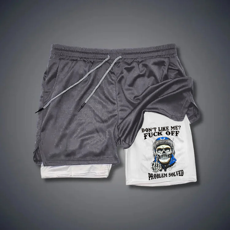 Don't Like Me Fuck Off Problem Solved Pattern Print Shorts Pants