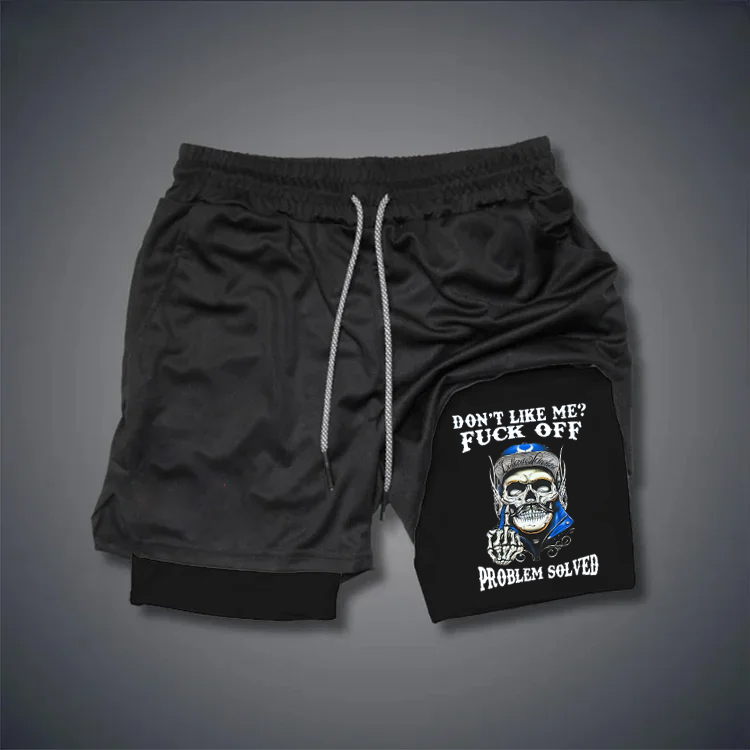 Don't Like Me Fuck Off Problem Solved Pattern Print Shorts Pants