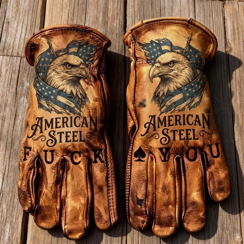 Patriotic Retro Style American Eagle Flag Print Leather Biker Gloves