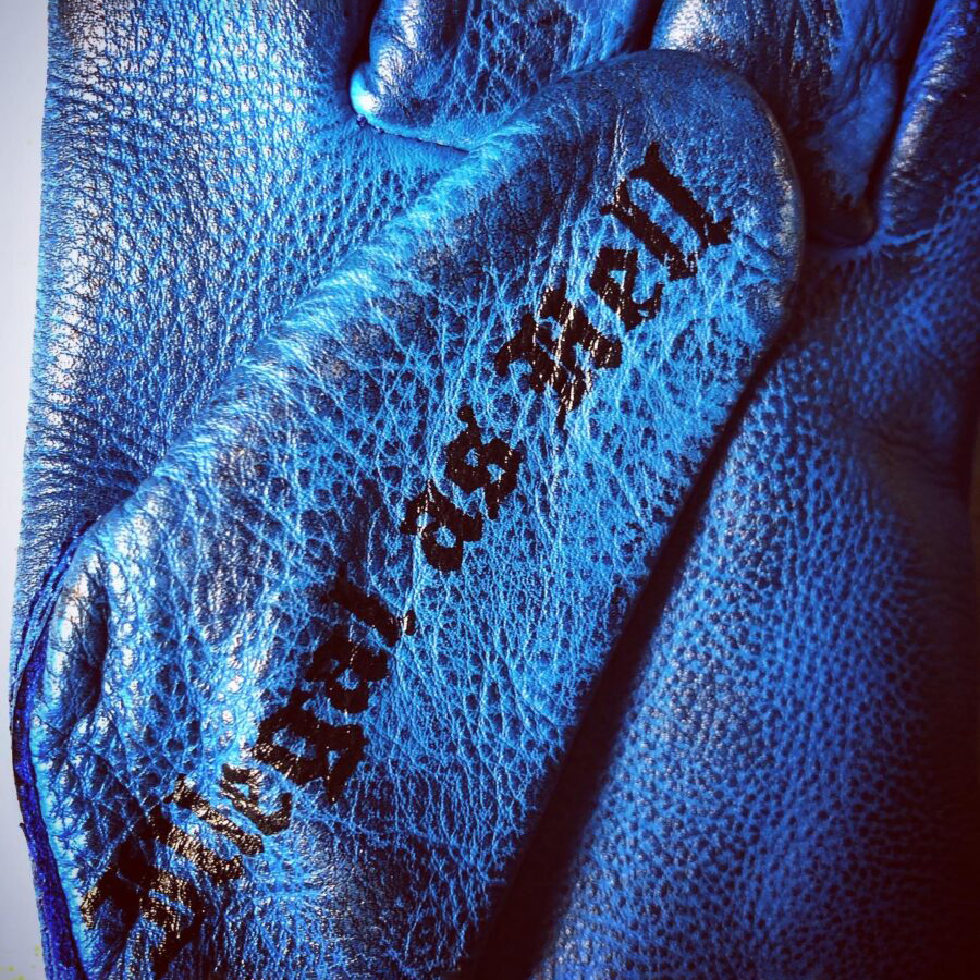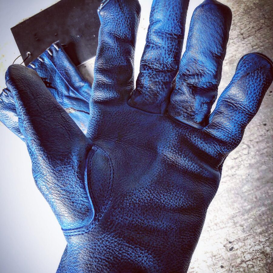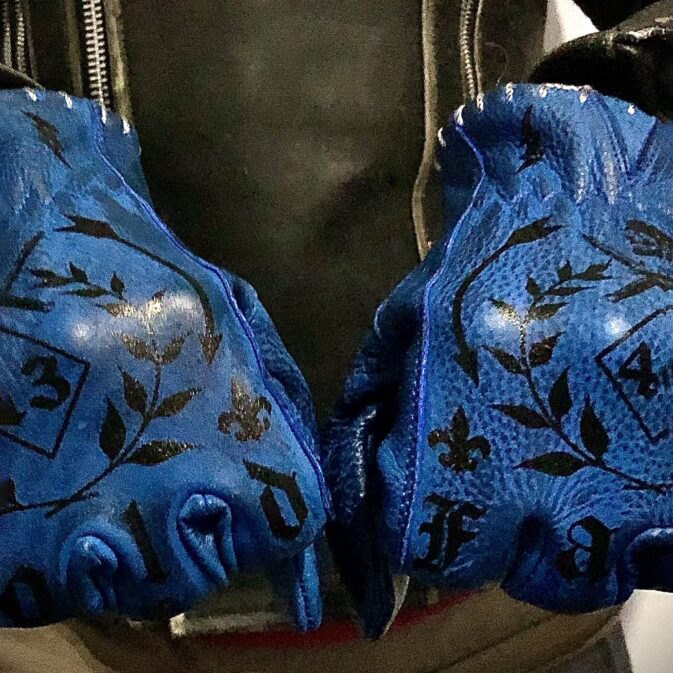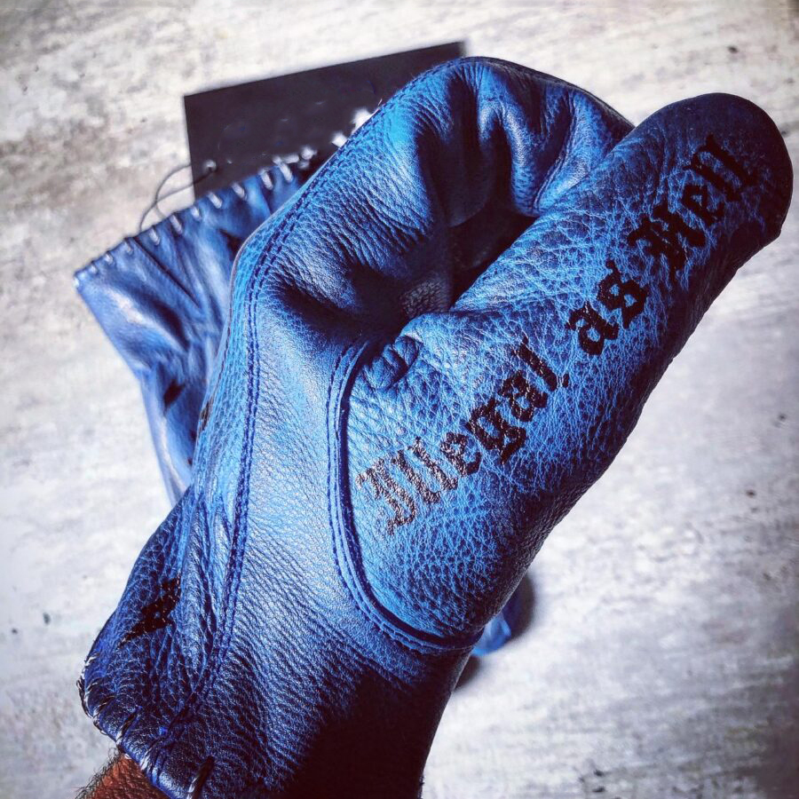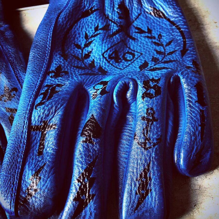 Tattoo art inspired electric blue genuine leather motorcycle riding gloves