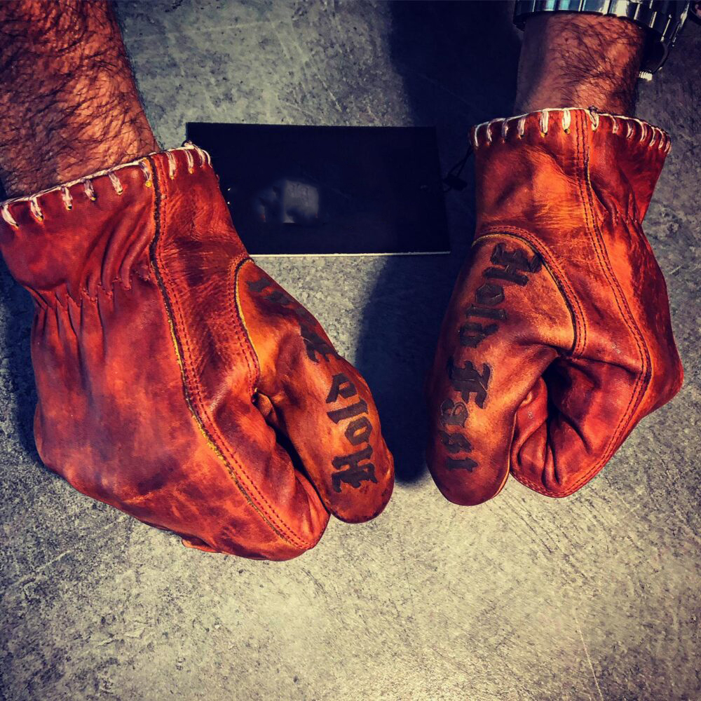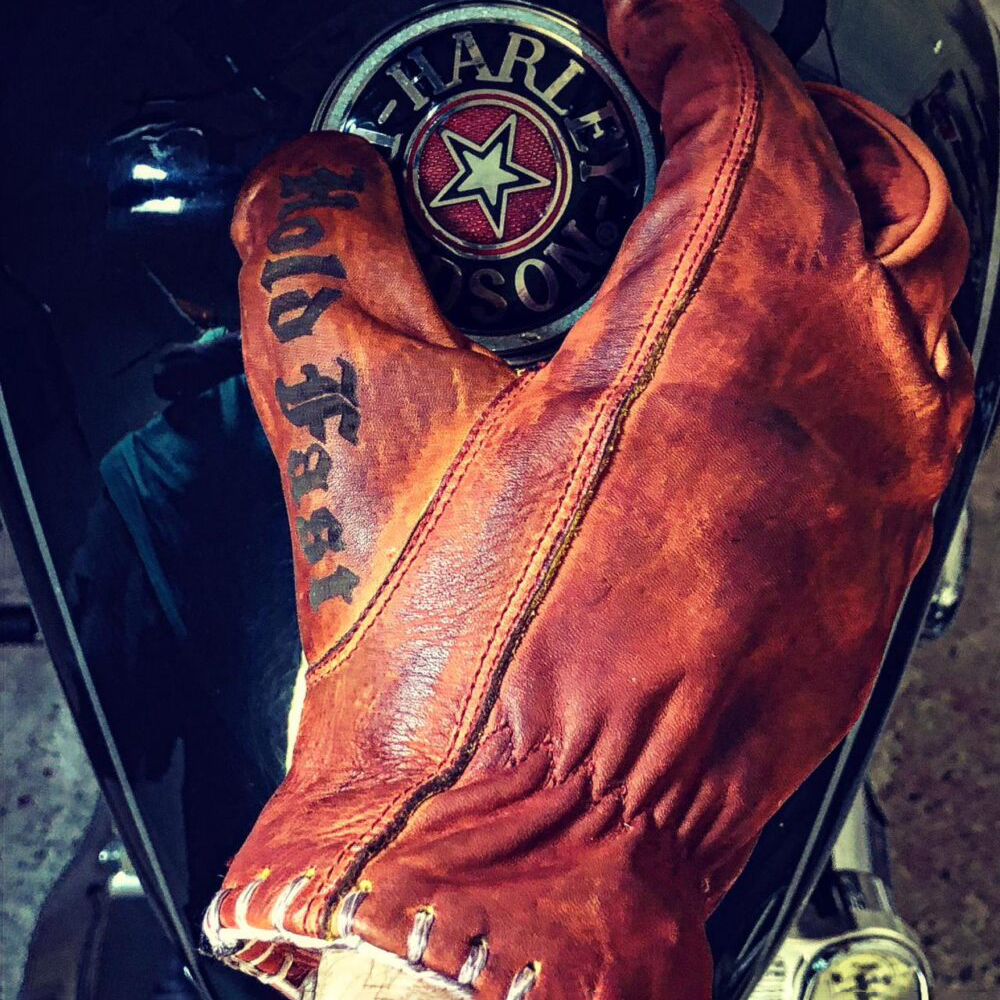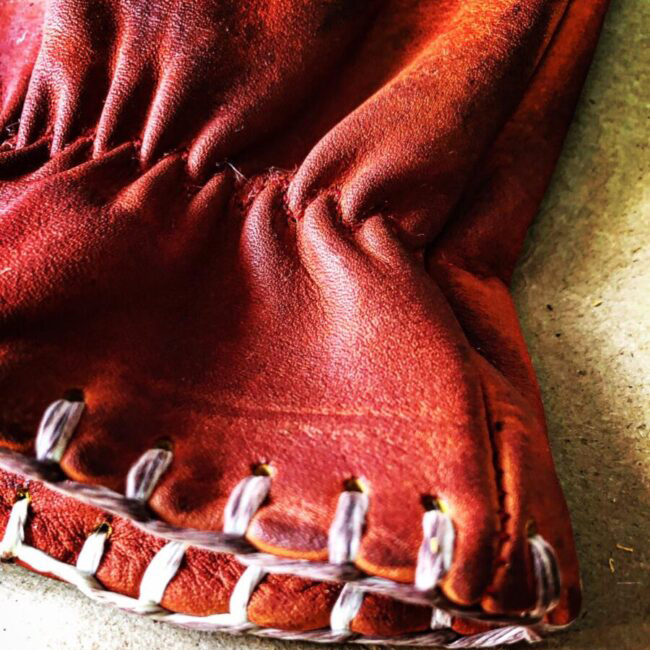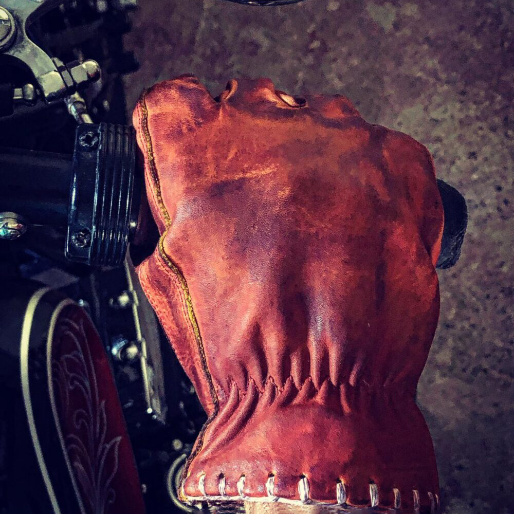 Vintage distressed grainy red leather handmade stitching motorcycle gloves
